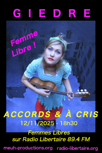 Giedré Pour Accords et à Cris, Agnès a rencontré Giedré, l'autrice fameuse de chansons éducatives, comme l'ode à la contraception ou Pisser debout !... juste avant son spectacle au théâtre de l'Atelier, en novembre 2025 à Paris. |