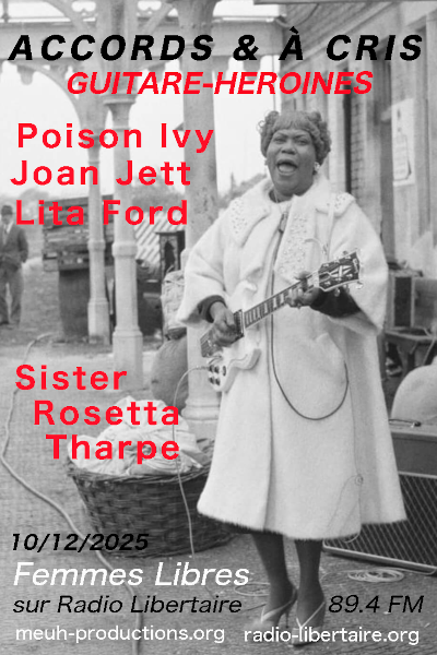 Guitare-héroïnes Dans le monde machiste du rock, les guitare-héros sont plutôt des mâles, donc écouter les guitare-héroïnes s'impose. Pour son 15eme épisode, Accords et à Cris fait un peu d'histoire avec 4 guitaristes féminines qui ont changé le monde du rock : Rosetta Sharpe, Joan Jett, Lita Ford et Poison Ivy. |