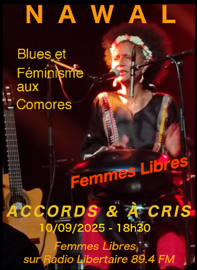 Nawal, voix rebelle franco-comorienne Née à Moroni, sur la Grande Comore, autrice compositrice, multi-instrumentiste et chanteuse, Nawal transgresse les codes de son île natale. Sa musique, qui se balade des polyphonies bantoues aux cultures arabes, indiennes ou persanes, est, comme sa carri`re, une lutte permanente pour l'émancipation des femmes. Pour en savoir plus : nawali.com |